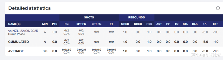 李玉乾的U16亚洲杯首秀,3.6分钟,2中0,拿0分1篮板0助攻0抢断0盖帽,正负值-5,效率值-1。那大家知道李月汝U16亚洲杯首秀啥数据吗?