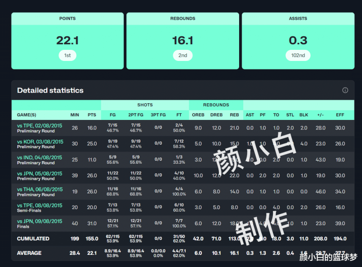 李月汝首秀26分钟(绝对核心+主力),15中7,拿到16分21篮板2抢断2盖帽,命中率46.7%,正负值+28,效率值30,这个差距是不是无比之大?