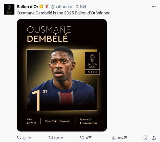 大争议? 佩德里仅排金球第11接近3000万阅读, 登贝莱得奖仅184万
