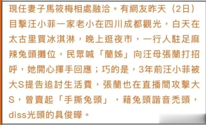 反观S家,眼见着汪小菲、马筱梅和大S留下的一双子女越来越亲密,台媒报道重点竟然放在了别人买兔头是内涵具俊晔上,甚至重提大S和张兰恩怨过往。