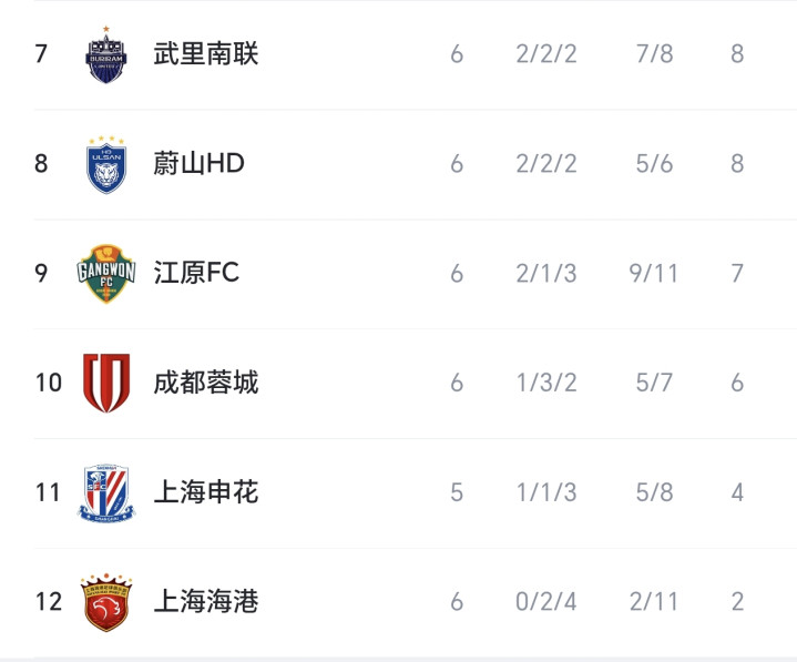 随着蓉城2-2神户, 海港0-0柔佛新山, 亚冠精英联赛积分榜出炉