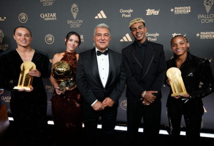 典礼上,巴萨球员亚马尔获得男足科帕奖,邦马蒂获得女足金球奖,维姬-洛佩兹获得女足科帕奖,艾娃-帕约尔获得女足盖德-穆勒奖,收获满满。